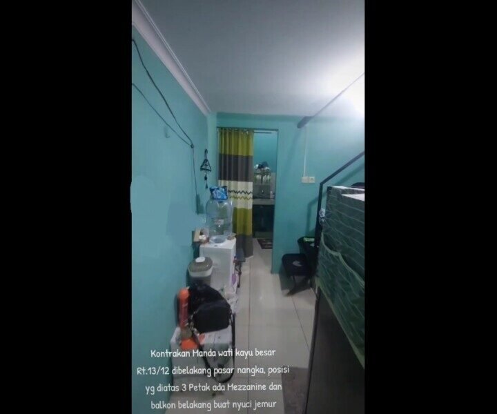 Kontrakan 3 Sekat, ada kamar atas Mezzanine, balkon buat Mesin cuci jemur, model komplek, gerbang satu pintu, bersih nyaman dan bebas banjir, diatas masih bs dibangun kos 8 Pintu