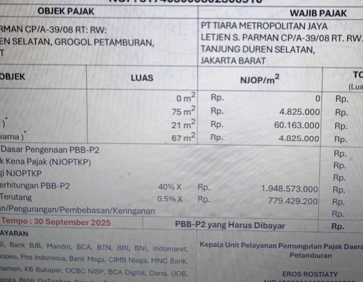 Njop 2025= Rp 1.948.573.000.-